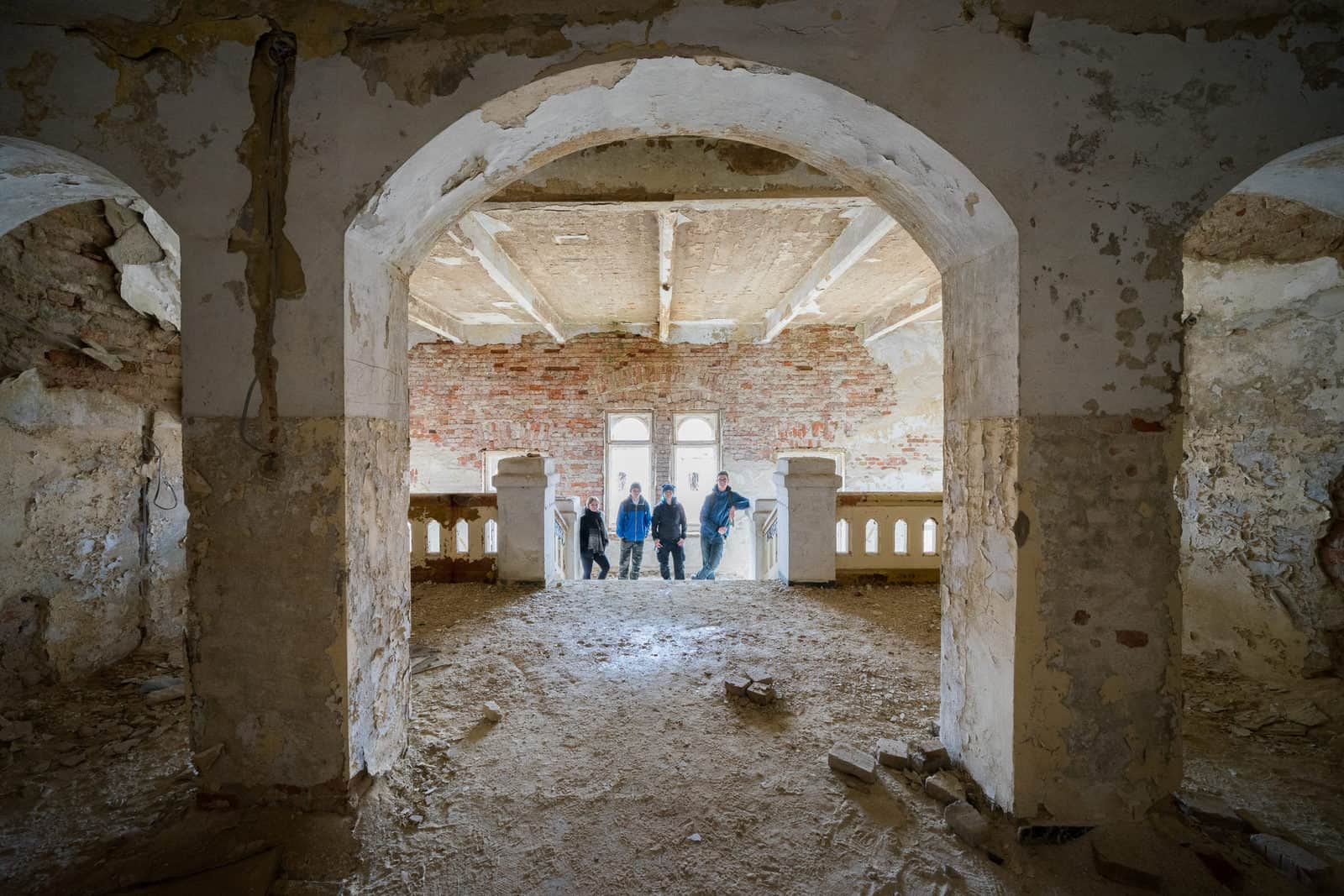 With these two “must-see” items ticked off, we explored some of the buildings near the road on our way back to the car. We found long corridors and peeling paint, as expected. After checking a rather innocuous building, we also discovered a surprise. We found an unexpected Soviet Theatre. The wonderful natural decay and lack of graffiti made this room a nice end to a successful trip 🙂