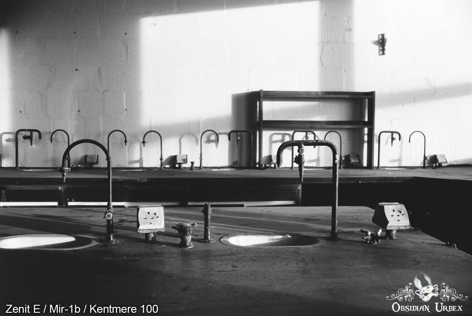 The grain is, of course, finer when compared to Kentmere Pan 400. In brighter spaces or outdoors on overcast days the 400 speed film is perfect, for bright days the 100 would be a better choice. For my work, I tend to shoot interiors on a tripod with a remote shutter so both ISO 100 and ISO 400 options are good for me. However, in some situations the ISO 400 film gives me the option to hand shoot whereas with Kentmere Pan 100 I almost always have to shoot on a tripod when exploring abandoned places.