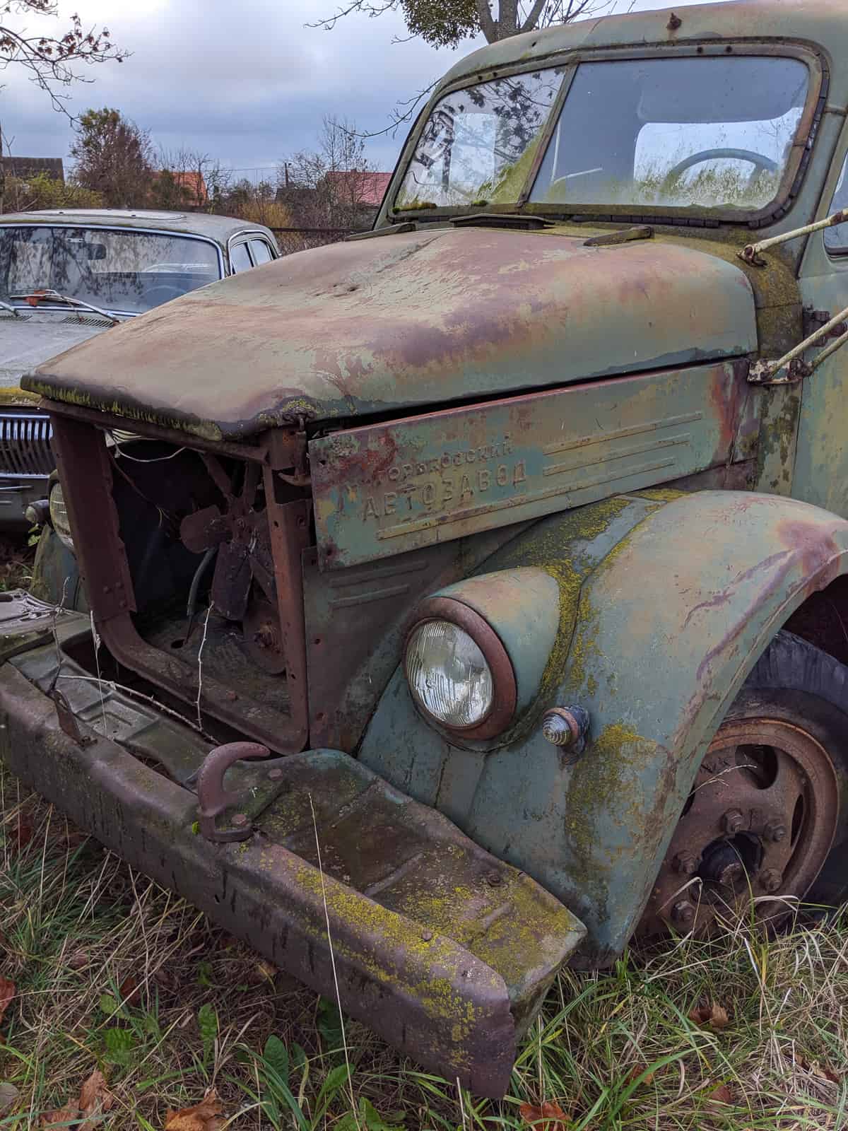 Further on in our road trip, the location of a Soviet Vehicle Graveyard was shared with us. There were literally hundreds of cars and trucks stored here. Many were modern, as most of the scrapyard is still active. This was another highlight of the tour. We spent well over an hour here photographing rusty wrecks.