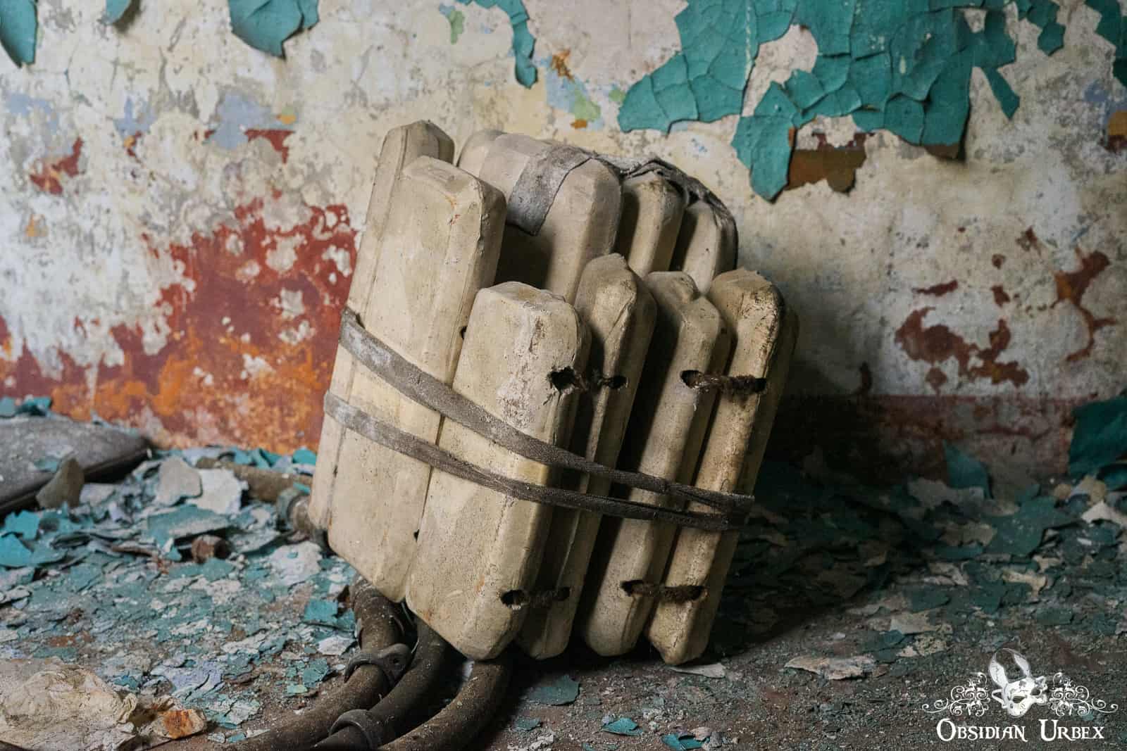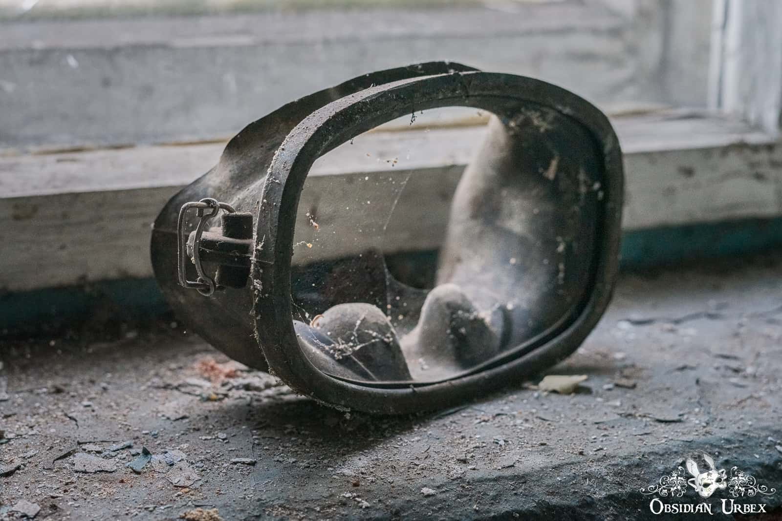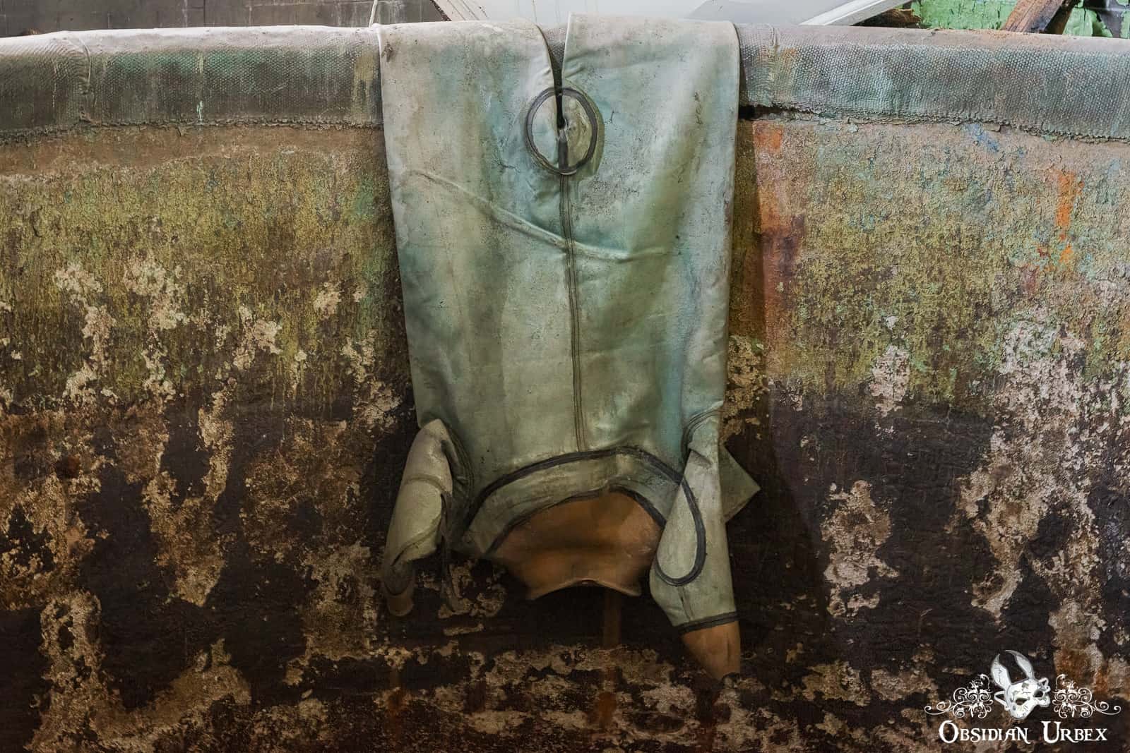 When I first got in, it was getting dark and I was super nervous about the drop as there would be no way to get out. Ended up going back the next morning, when I realised as unphotogenic as it is I wanted to document it properly with more photos. That gas mask and suit though, definitely nightmare fuel!