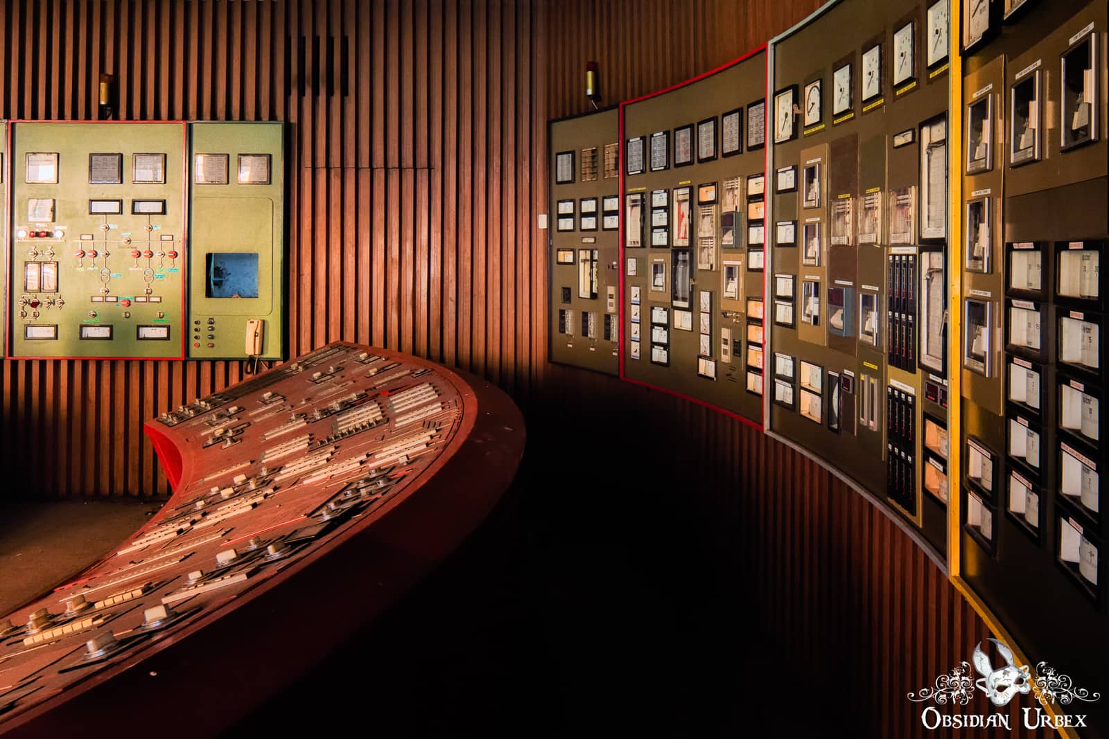 The light in here was very strange. Behind me there were orange windows. Was a challenging shoot with the strong orange colour cast, as well as being very dark. Certainly one of the most interesting control rooms I think, with the bold colours 😊
