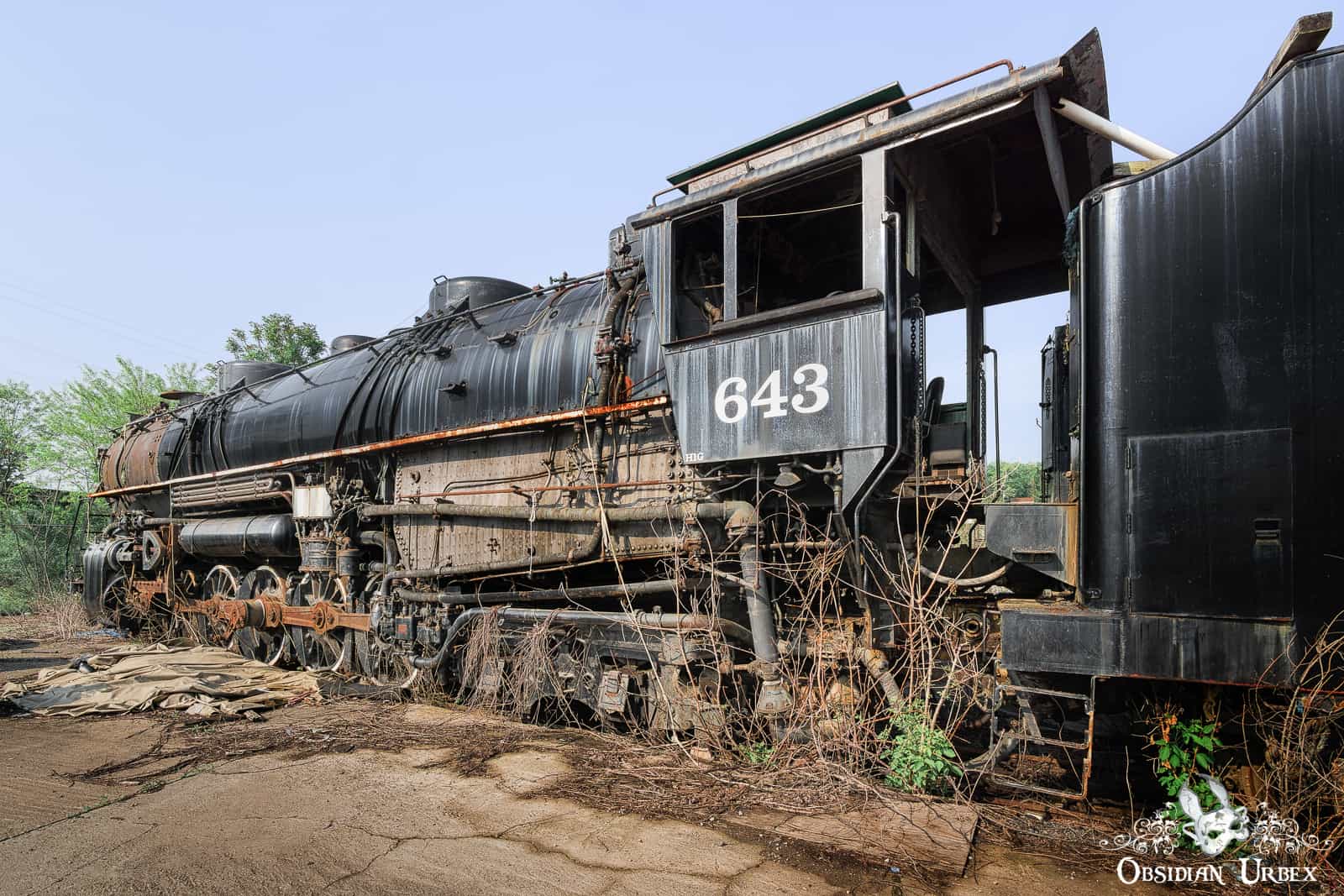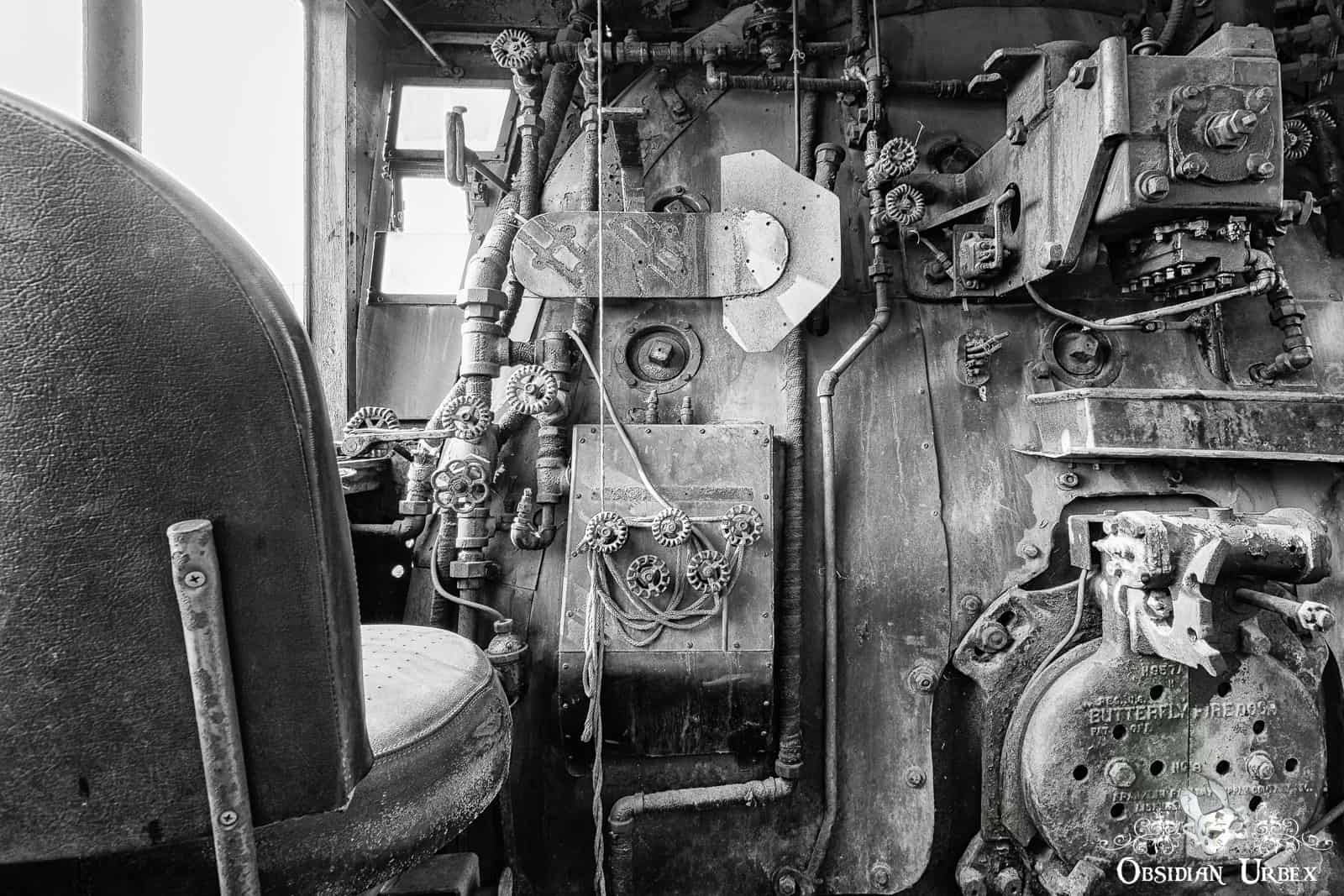 After being bought by the present owner in the 1980s, the train was brought to the site on the nearby main railway line. Initially stored in a warehouse at this impound. Subsequently, it was partially restored over the next few years. The boiler was repaired, and the engine was steam tested. However, excursions were never run as the running gear system was not repaired or serviced. Without the proper legal safety certification, the train was prohibited from moving. At some point, the steam locomotive was moved outside, likely around the mid-2000s. It is becoming increasingly difficult to get a steam engine certified; the skills and knowledge needed are being lost over the years. Those who are still able to perform the certification tests often insist on a full engine rebuild. The locomotive awaits an uncertain future, unable to move under her own steam.