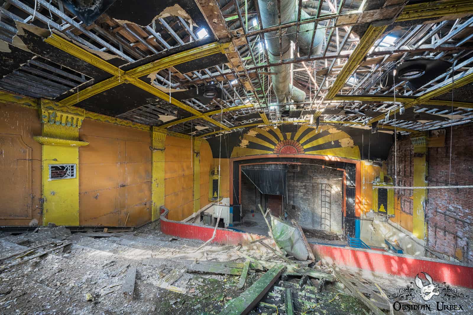 This wonderful Art Deco Cinema was once a bustling entertainment venue. It is located in a small English town, which is surrounded by rolling hills and countryside. The once grand building was in ruins at the time of my visit. The roof had partially collapsed and years of water ingress had taken their toll. Rotting wooded floors, crumbling concrete and rusting metal work all made this a cautious explore. I visited this location during 2020; a year where I explored several other British theatres/cinemas.