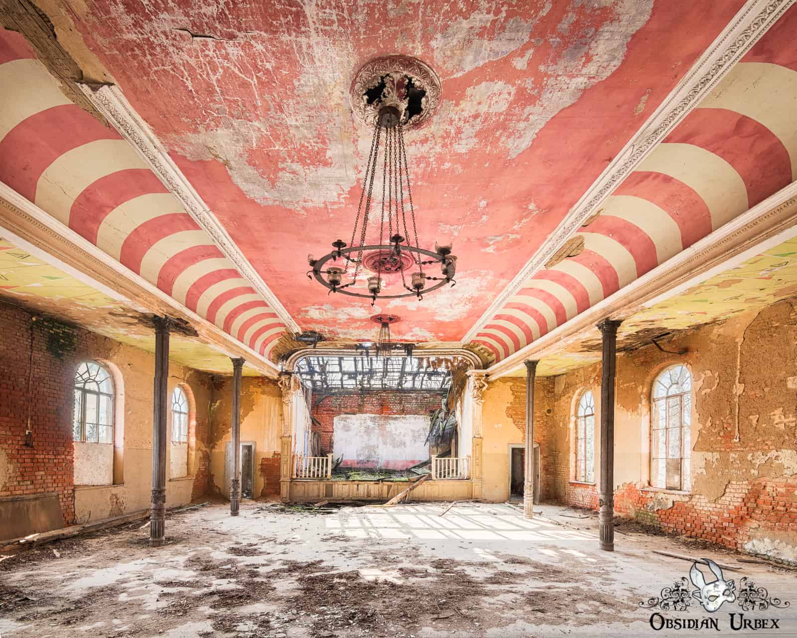 Abandoned ballrooms litter the former German Democratic Republic (GDR). Every town seems to have had one. Evidently a key part of the community, ballrooms were a place to meet and to be seen. These entertainment venues were popular right up until the fall of the Berlin Wall in 1989. Subsequently, they began to fall out of fashion in the newly reunified Germany. One by one they began to close. While some were renovated, others were demolished. Some, such as Ballsaal Rot Weiss, appear to have simply been left to decay. Empty and forgotten the ballroom decays, year after year.