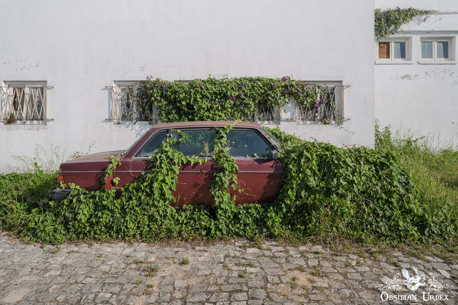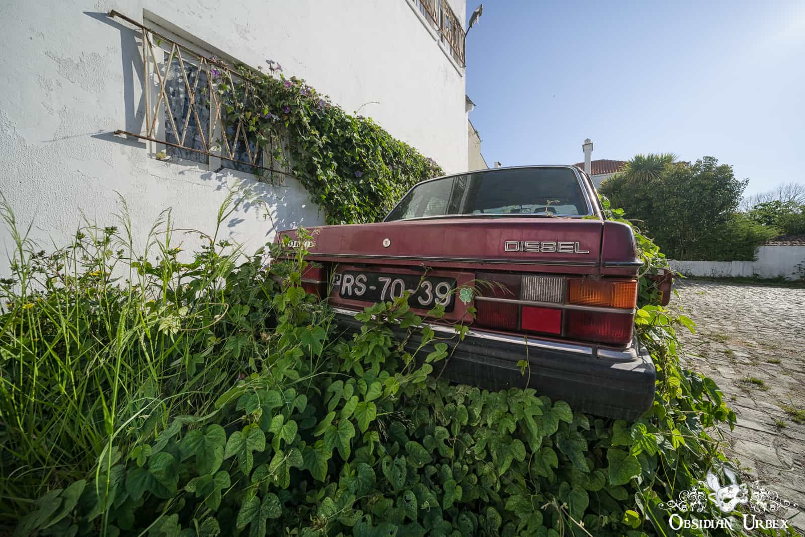 Convolvulaceae Volvo is an abandoned car sitting at the roadside in a small town in Portugal. This one was a discovery completely by chance! As we drove between two abandoned locations, we spotted this car at the roadside. The car stands in the parking lot of an abandoned factory or garage. This one was a wonderful excuse to stretch the legs and snap a few photos in the process.