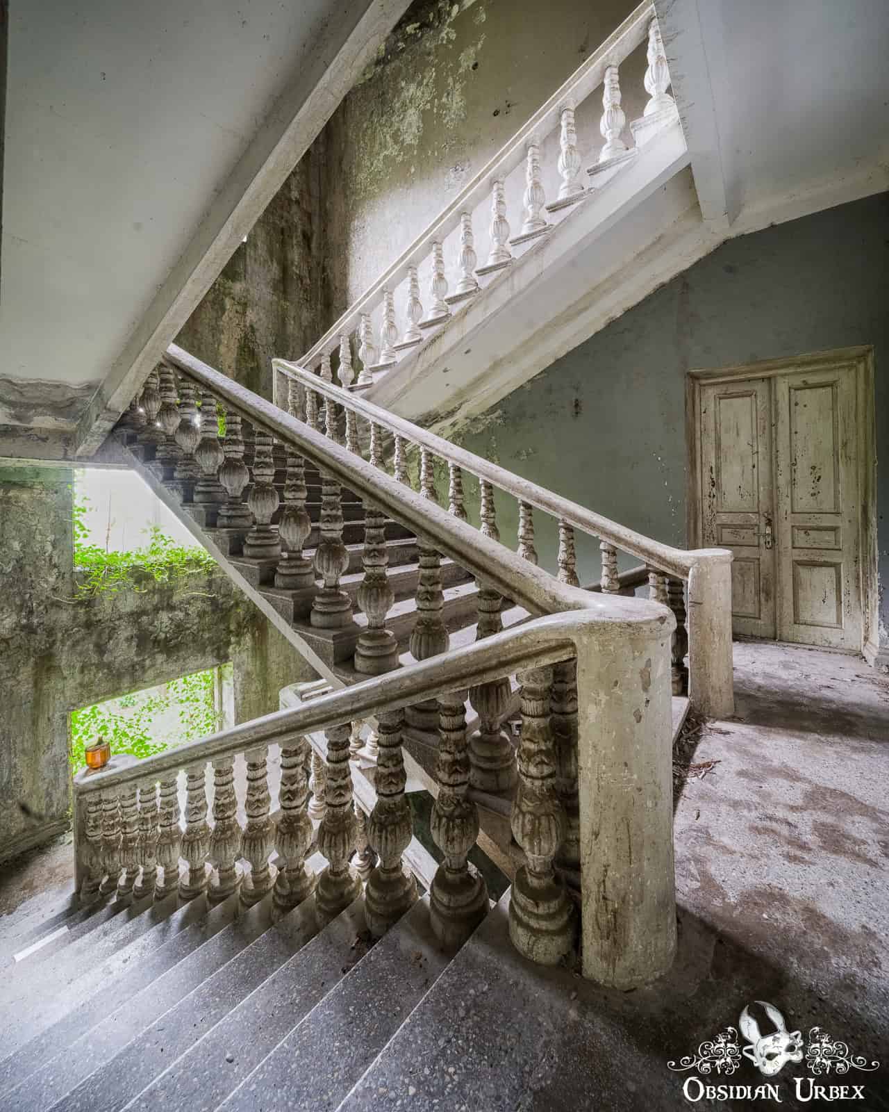 In a small collapsing room at the rear of the building, there is another Lenin bust. This larger version stands in the corner; ivy has found its way through a window nearby and clings to his head!