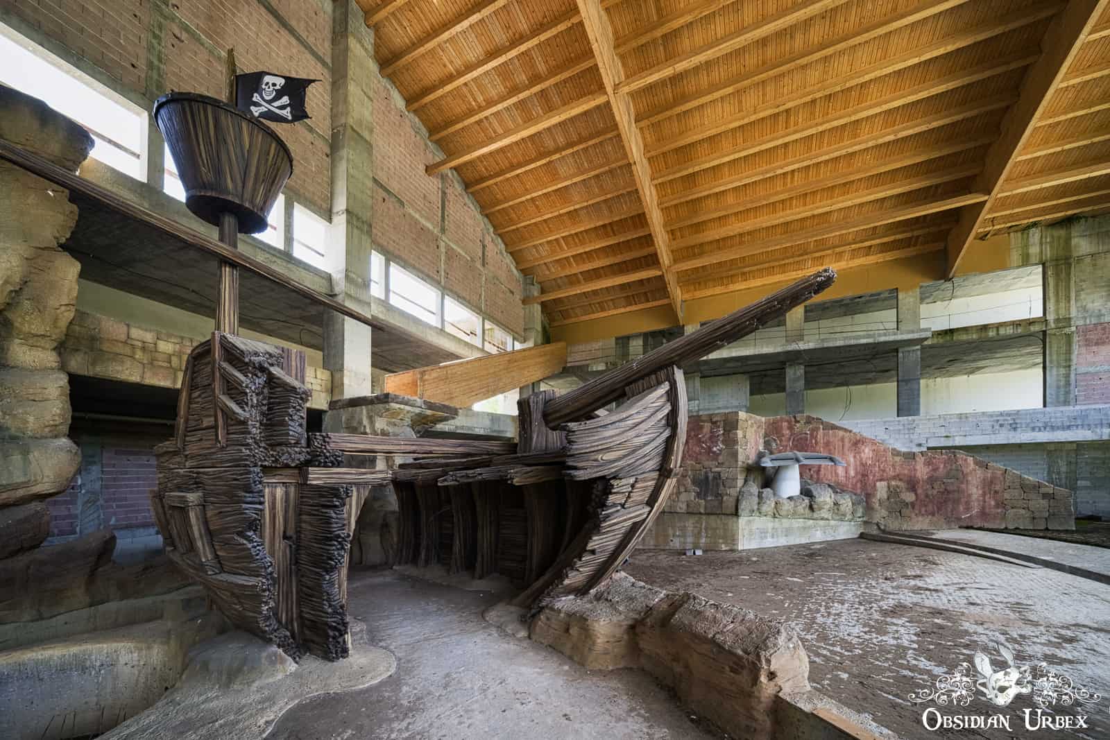 Making my way through the hole in the fence, I crossed the rickety bridge to the water park. The brightly-coloured water slides caught my eye first, snaking and coiling their way from the very top of the bare concrete structure. Inside this largest building is also a shipwreck-themed play area, which I thought was pretty cute.