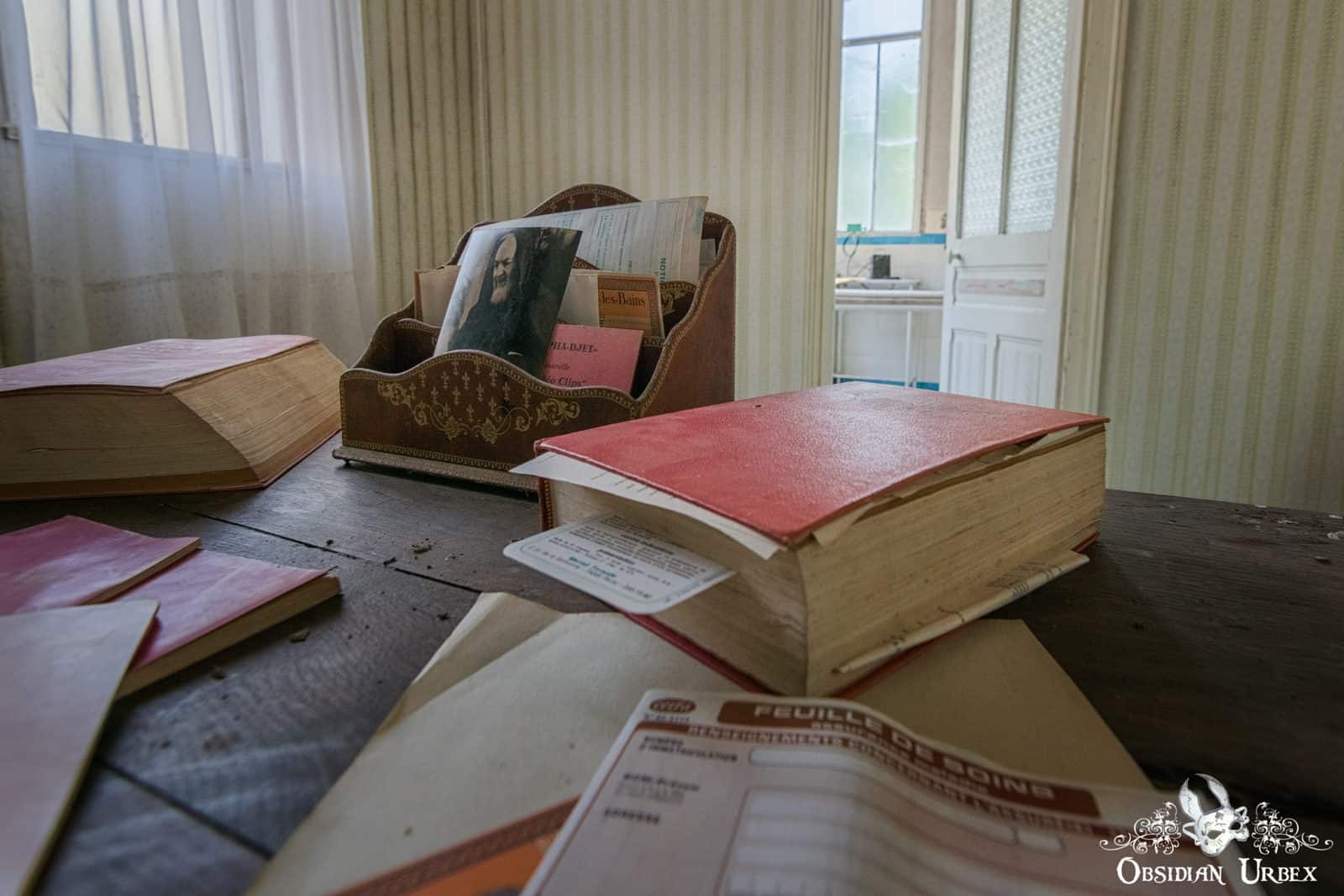 Another interesting area at Les Thermes Bleus is the medical wing. Inside this area is a doctors office. Papers and books lay scattered on the desk. Leading off from the office is a treatment or examination room. Inside this room there is a bed, vintage scales and a few other pieces of medical equipment. There is also a waiting room with leather benches where patients would await their appointment.