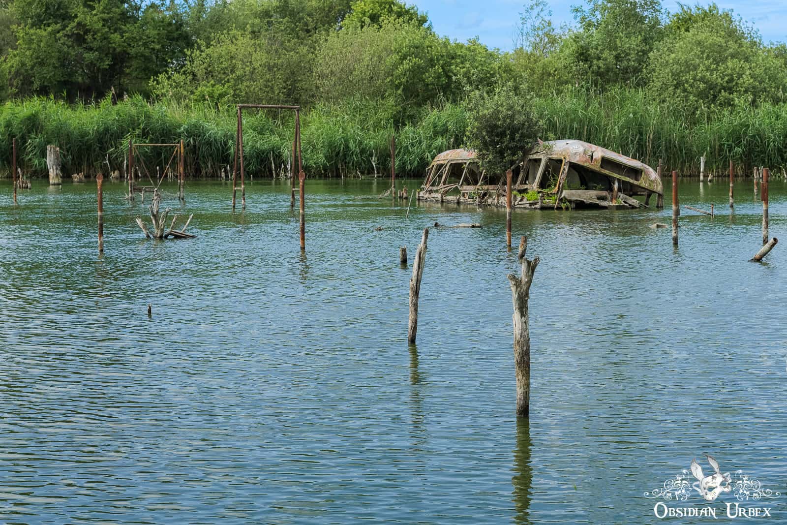 Buswrack im See is an abandoned bus, partially submerged in a salty lake. This interesting scene is located in east Germany. We visited this location in during the Germany Summer 2020 – The GDR Ballroom Tour.