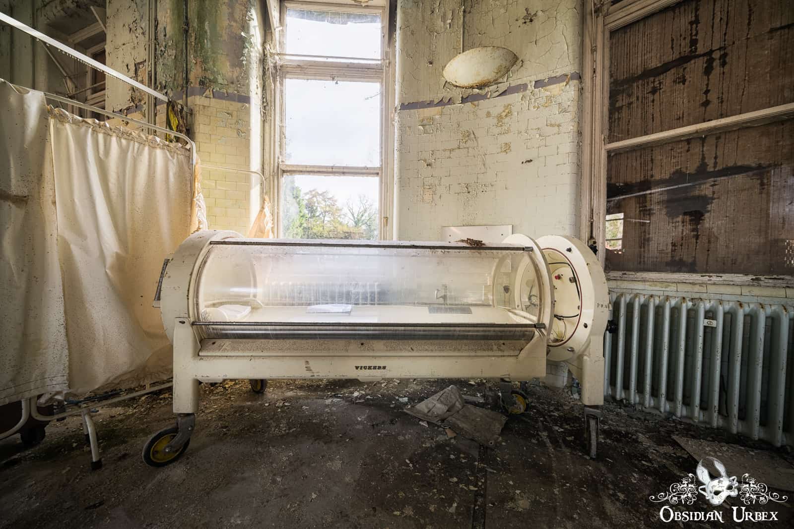 An Iron Lung & Hyperbaric Chamber; two interesting pieces of old medical equipment that remain in a former hospital in Ireland.