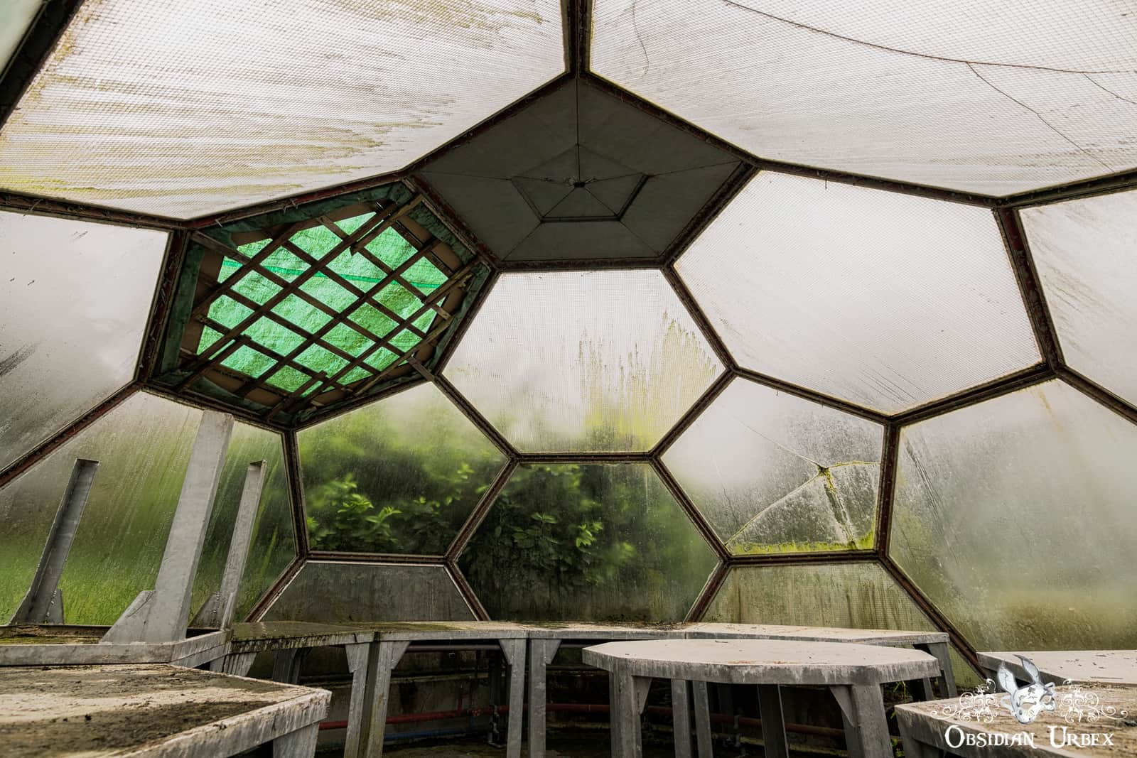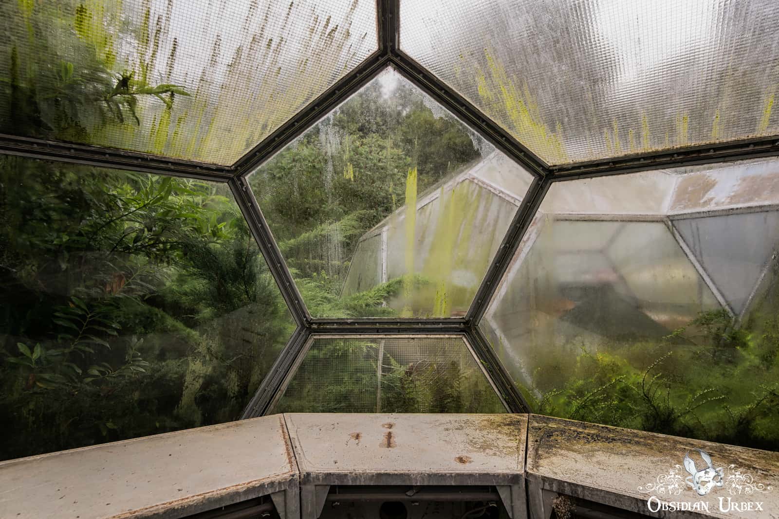 The geometric shapes of the hexagonal and pentagonal windows, mixed with the green of the external vegetation made for a very satisfying photography experience. Beautiful ferns now grown unchecked out of crevices between the pods. The striking shape of the greenhouses is reminiscent of something you would see in a Sci-Fi movie, on a distant world with alien life inside.