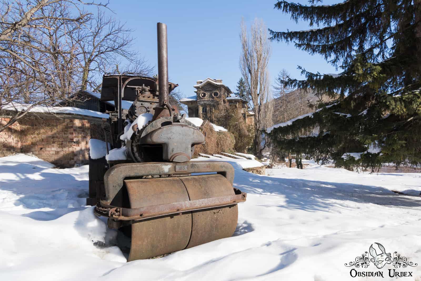 Tucked away in an unassuming back road of a Bulgarian town, sits a rusting Steampunk Steamroller. The steamroller lies within the grounds of a large ruined mansion, which was once owned by an important Bulgarian businessman. Over the years the town has encroached, surrounding the mansion and steamroller.