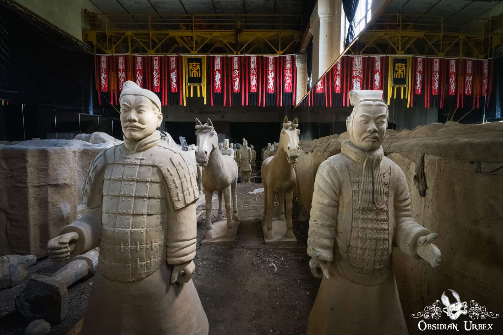 The Terracotta Army features over 200 figures; including soldiers, generals and horses. Terrakotta Armee is an alternate name for this location. These are plaster replicas of the Chinese Terracotta Army. It represents one of several such replicas scattered around the world. This replica was toured around Germany in the mid-2000s. In spite of this, they now they stand forgotten in an abandoned German factory. They stand silent, waiting to go on display once more.