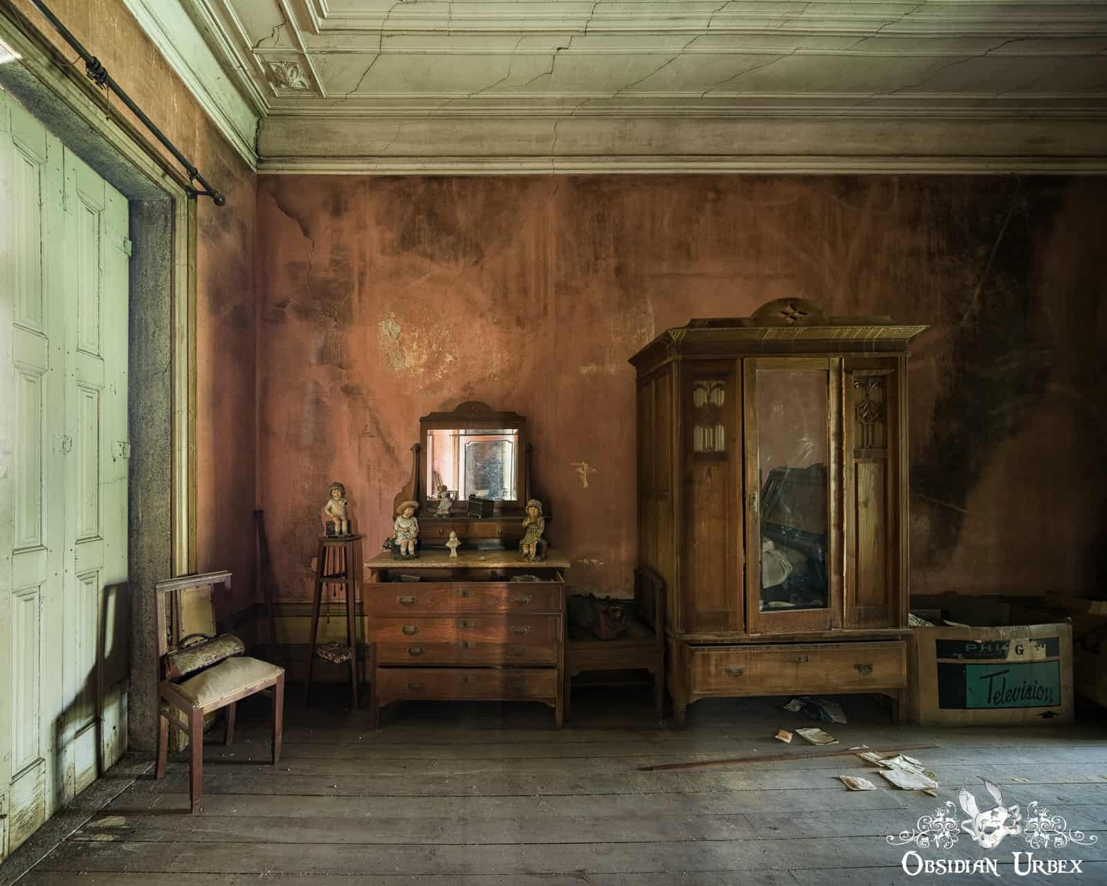 Palácio dos Flores is a unique gem, an abandoned mansion in Portugal tastefully decorated and filled with exquisite furniture. Despite my best efforts, I was unable to discover any information regarding the history of this house. It is likely in the mid- to late 19th Century. However, given its good condition, it is possible that it has not been abandoned for long.