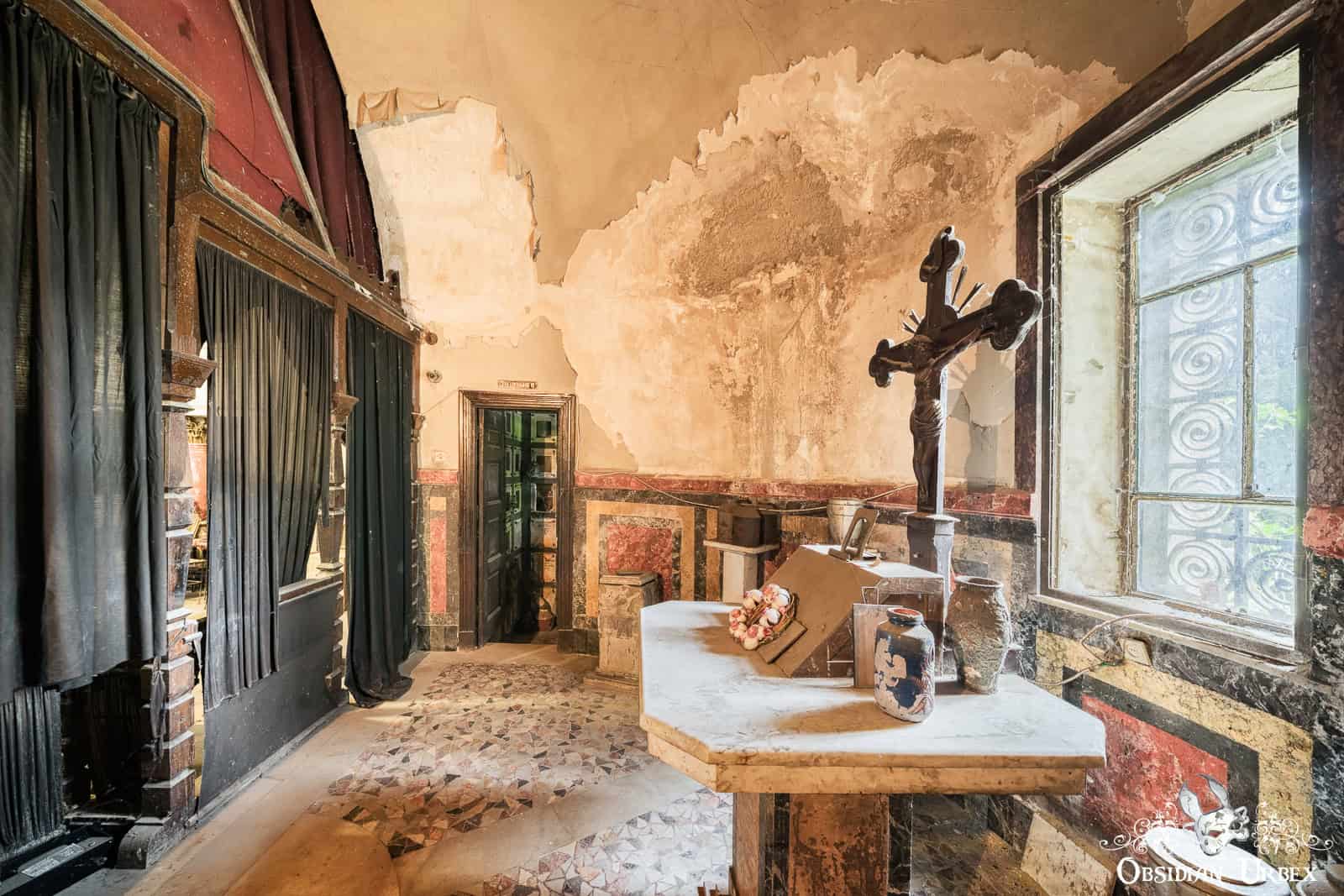 This crematorium opened in the 1920s, a grand project by the newly established Romanian Cremation Society. Designed by a leading Romanian architect of the interwar period, the architecture was influenced by both classical and modernist styles. The cremation chamber features bold geometric design, the designs picked out by black tiles set against white surrounding tiles. The overall design of this area certainly aligns with the Art Deco movement of the time: clean lines, geometric forms, and a sense of grandeur. The funerary hall features a vast, domed chamber with high, arched windows. Natural light floods filter in, creating a sombre yet serene atmosphere. Here, the ashes of the cremated are stored.