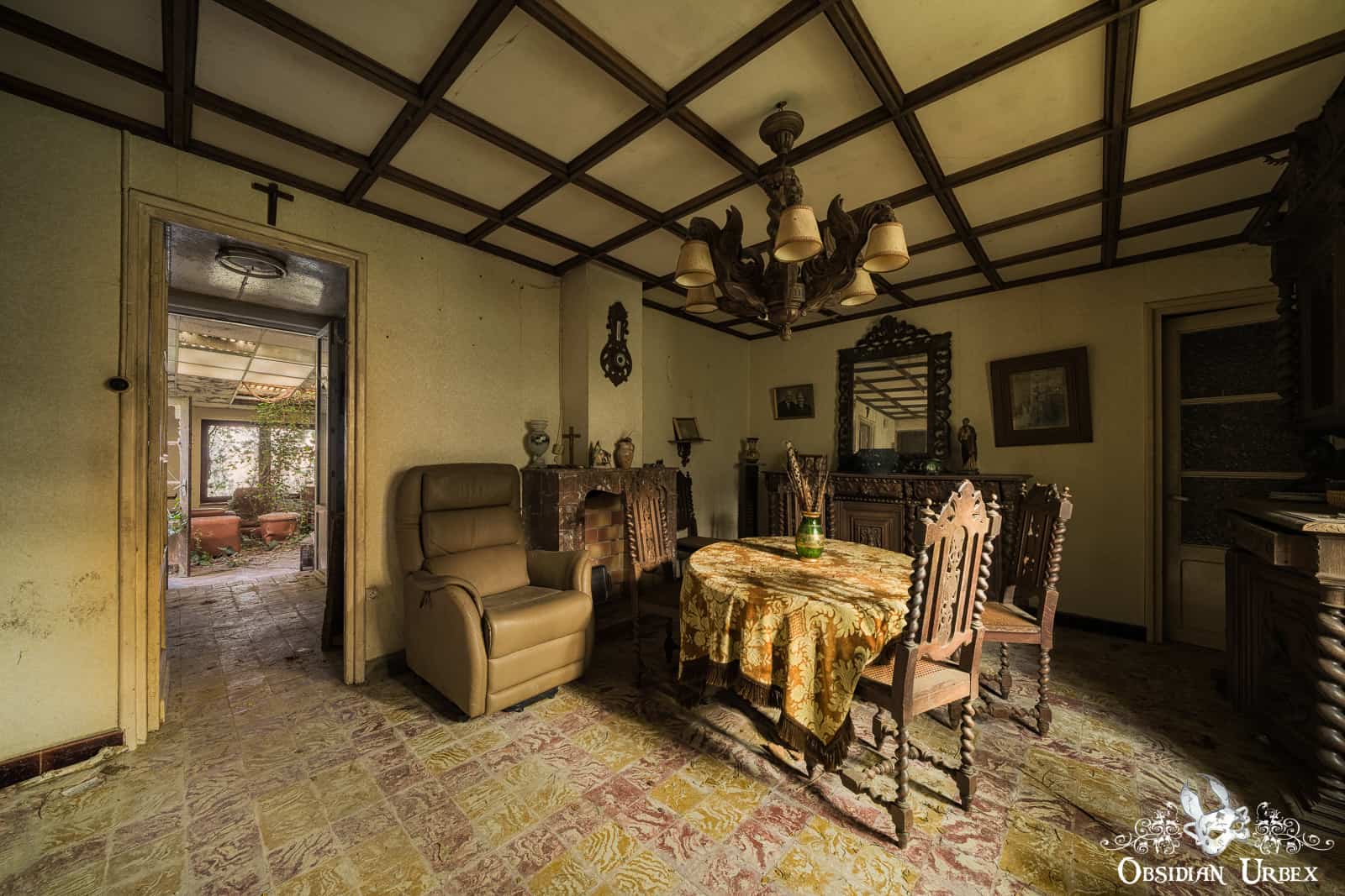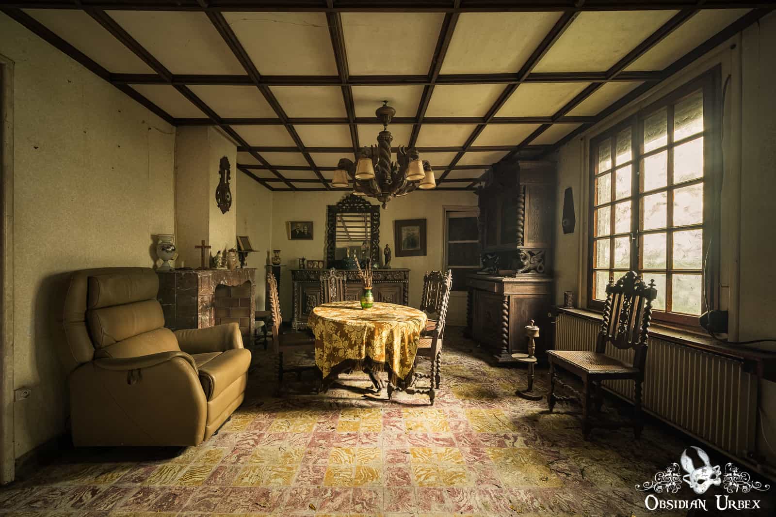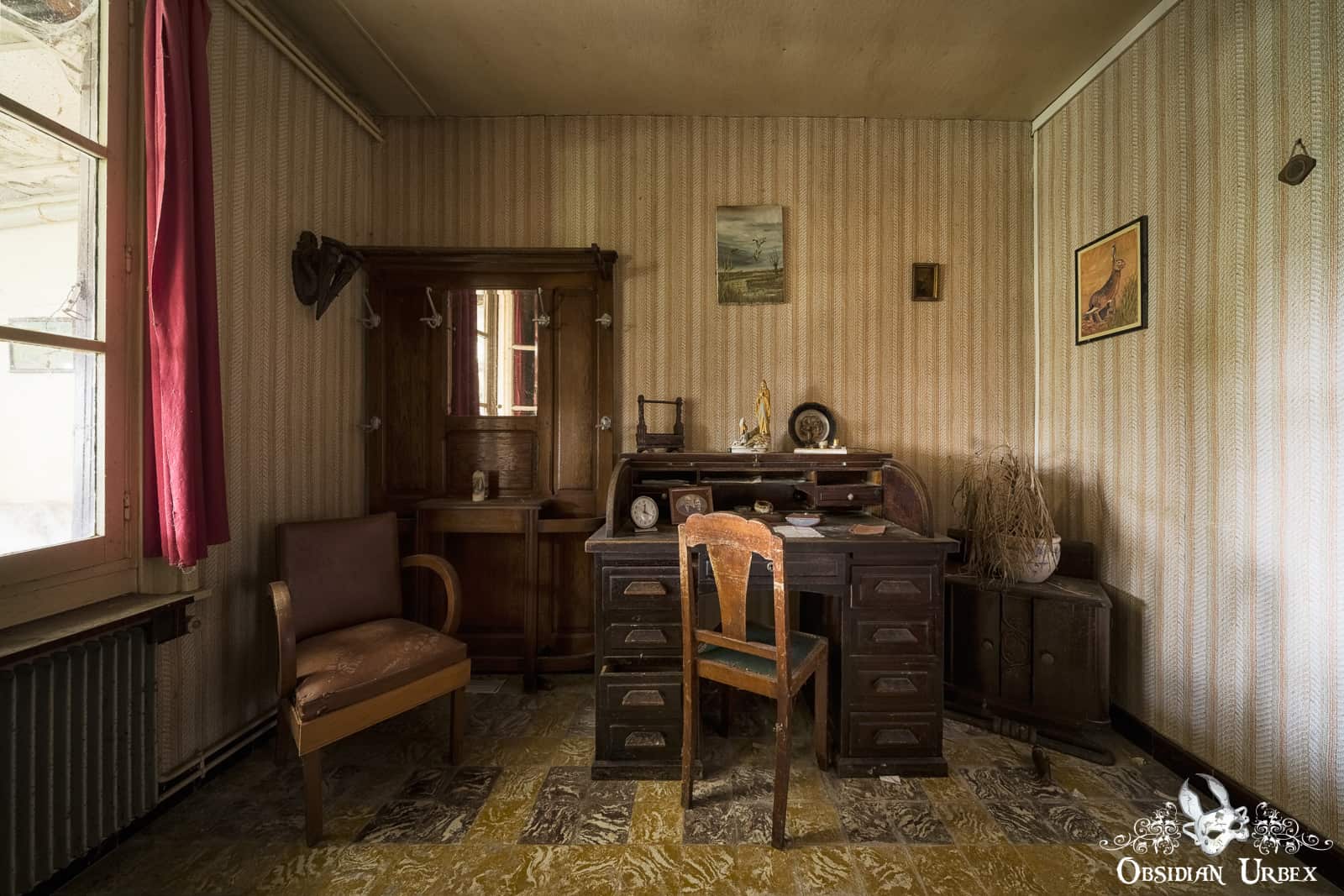 The living room is wonderfully charming, as is the case in these smaller abandoned French houses. There is the usual carved wooden furniture one comes to expect in these abandoned houses. Additionally, the room is warm and inviting with the afternoon sun peaking through one unshuttered window.